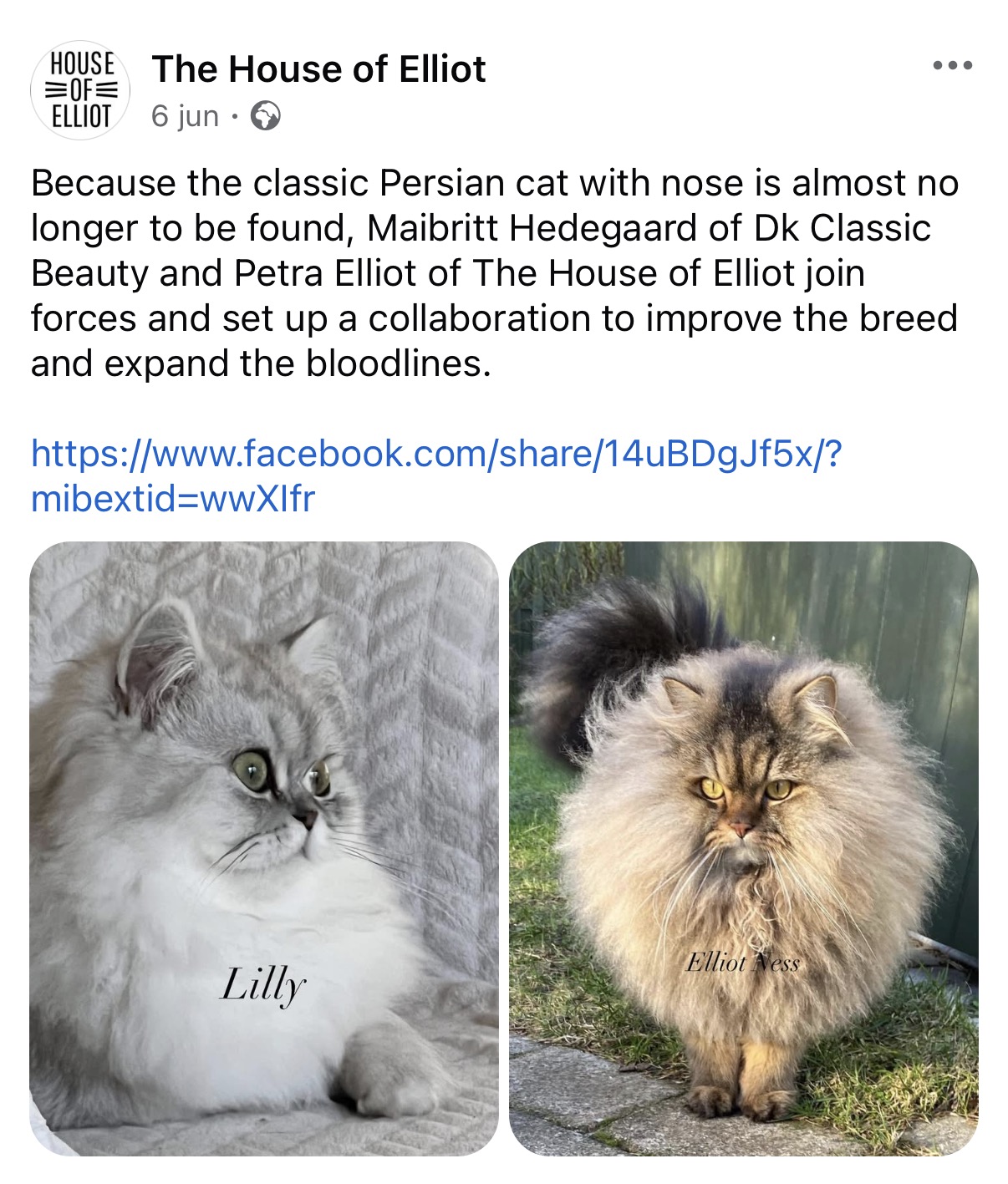 The house of Elliot werkt samen met Snowfins family in België en DK Classic Persians in Denemarken.